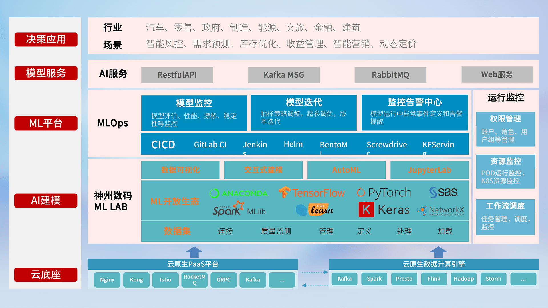数据+模型双引擎驱动,,,,面向智能服务场景,,,,快速灵活利用AI技术,,,,支持业务决策,,助力企业智能化转型破局。。